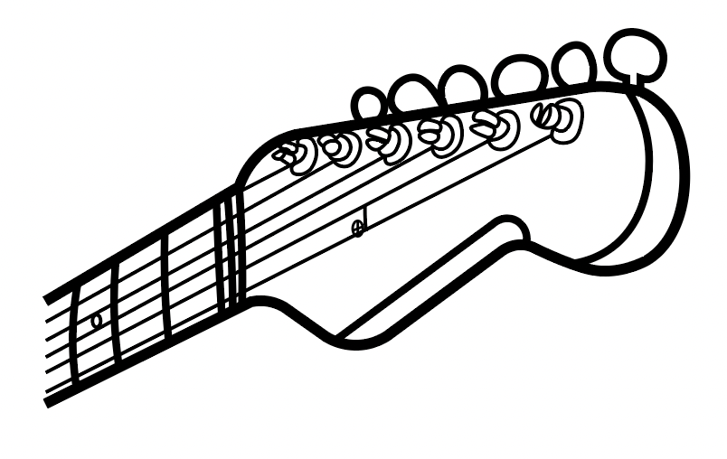 Using Illustrator, I created a volume knob, but replaced the word “volume” with “loud” to tie in better with the brand’s slogan, The Sound of Loud, using the Phosphate Inline font to mimic the etched lettering and numbering on actual knobs. I also created an icon of a guitar’s headstock. I kept these in black and white to align with the logo, and I left the lines a little less clean to match the brand’s identity, as well as the hand drawn feel of the decal on the DT+ pedal.