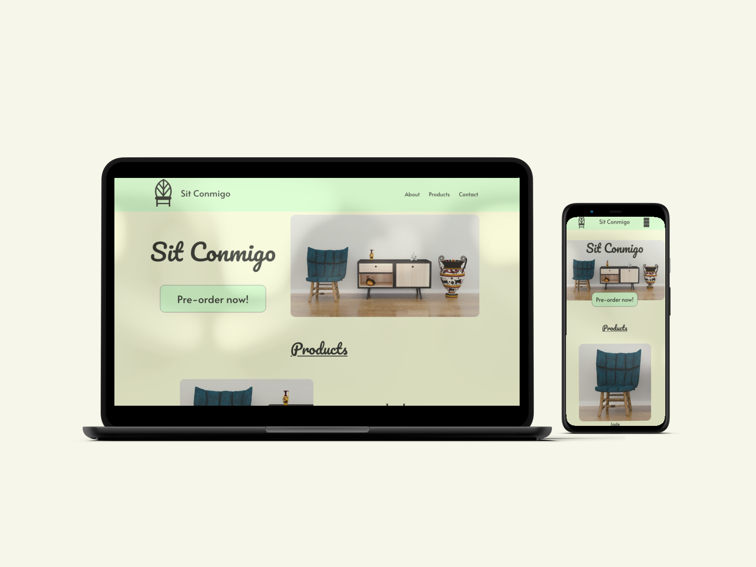 A set of website design comps for Sit Conmigo, a sustainable furniture company, that will scale for a variety of screens.